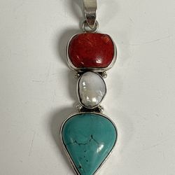 Sterling Silver Bezel w/ Multi Stone Pendant ~ Turquoise Coral Freshwater Pearl$95Irvine, CA