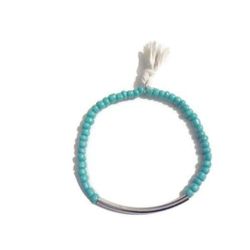 Turquoise Color Seed Bead & Silver Tone Tube Stretch Bracelet$12Glendale, CA