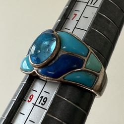 Vintage Jay King DTR Size 8 Sterling Turquoise & Lapis Ring$65El Monte, CA