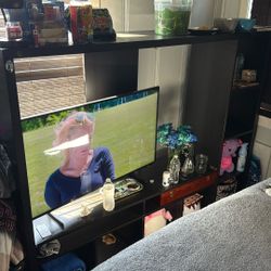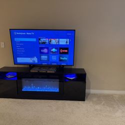 80" Fluted Glossy Black TV Stand for TVs up to 85" with LED lighting, cabinet, and adjustable shelf$90Anaheim, CA