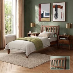 mopio Ted Bed Frame with Headboard, Mid Century Modern Acacia Solid Wood Platform Bed Frame, Wooden Slats, No Box Spring, Double Metal Bar Support (So$170Fullerton, CA