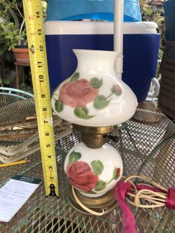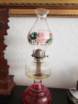 Vintage oil lamp with hand painted glass top$120San Pedro, CA