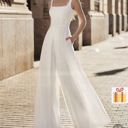 Ivory jumpsuit bridal dress with pockets floor length square neck$120Paramount, CA