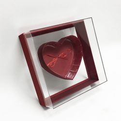 Red Transparent Hard Plastic Square Flower Box With Heart Shape In The Middle/Caja para flores cuadrada de plástico duro transparente roja con forma $30Covina, CA