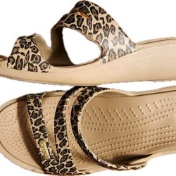 Crocs Women's Patricia Beige/Tan with Leopard Strap Wedge Sandal Size 9$50Newport Beach, CA
