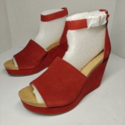 Size 9 Lucky Brand Yemisa ankle-strap platform wedge sandals in red suede$20Santa Ana, CA
