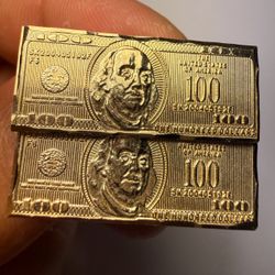 Real 10k Yellow Gold One Hundred Dollar Bill Rectangle Stud Earring 0.5” Inches Tall 28mm Wide $340Monterey Park, CA