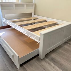 White Queen Bed With Trundle - No Mattresses $600Bell Gardens, CA
