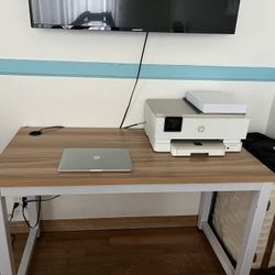 White And Teak Wood Computer Desk Table 63’ $100Alhambra, CA