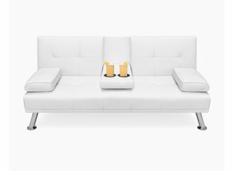 🛋 BRAND NEW Faux Leather Modern Convertible Folding Futon Sofa Bed Recliner Couch w/Metal Legs, 2 Cup Holders, White$279Los Angeles, CA