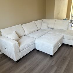 Ivory White Sectional Sofa With Storage Ottoman - Free Delivery ✅ Sectional Sofa Ivory Corduroy $490Los Angeles, CA