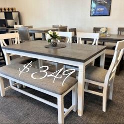 Elegant 6-Pc White & Gray Dining Set (Table + 4 Chairs + Bench)$349Downey, CA