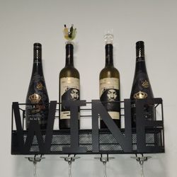 Wall-Mounted Black Metal Wine Rack w/ 'WINE' Cutout + 4 Glasses$10Los Angeles, CA