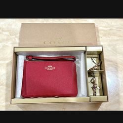 Coach Boxed Corner Zip Charm Leather Wristlet 6 Inches Red New Gift Set $128$68West Covina, CA