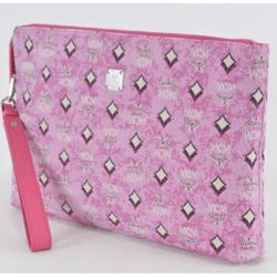 New MCM Jacquard Leather Veritas Visetos Logo Wristlet Purse Clutch Pouch PINK$350Bell Gardens, CA