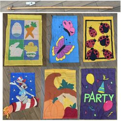 lot of 6 large appliqué house flags / banners - Easter Summer 4th of July Thanksgiving + Flag Pole$15Tustin, CA