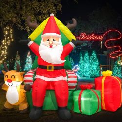 Christmas Inflatable Yard Decorations 6FT Santa Claus Sitting on Gift Box Built LED Lights Indoor Outdoor Holiday Xmas Decor$135Downey, CA