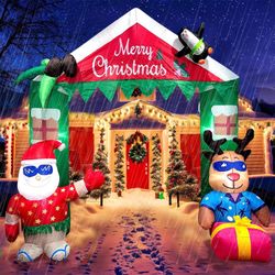 8FT Christmas Inflatables Archway Hawaiian Santa Claus Reindeers Penguin Inflatable LED Lights Outdoor Garden Lawn Xmas Decor$195Downey, CA