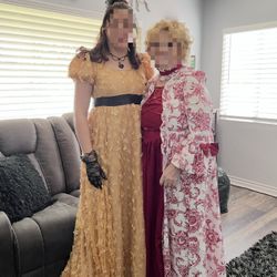 Women’s Halloween costume dress Royal Court Presentation, Regency Romance Queen Large X-large (10-12) Adults dress, yellow/brown/blue, includes 1 pie$25Los Angeles, CA