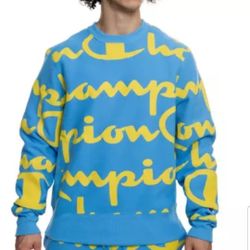 CHAMPION REVERSE WEAVE CHAMPION YELLOW PRINT ALL OVER CREWNECK SWEATSHIRT BLUE MEN'S SIZE LARGE REGULAR FIT BRAND NEW WITH TAGS CHECK OUT MY OFFERS. $80Huntington Park, CA