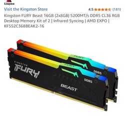 Kingston FURY Beast 16GB (2x8GB) 5200MT/s DDR5$150San Jose, CA