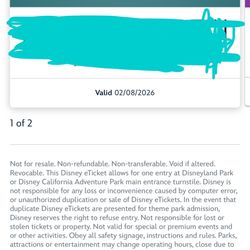 2 Disneyland Sweetheart Night Tickets Feb 8th$370San Jose, CA