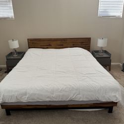 Solid wood platform bed frame with adjustable headboard. King size$200Concord, CA