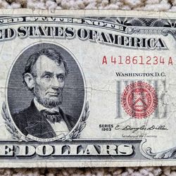 Vintage 1963 red seal small face note $5 bill old paper money American domestic currency$25San Mateo, CA
