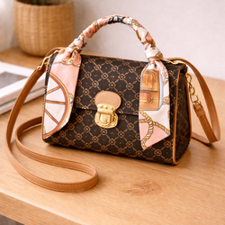 Vintage Brown Printed Handbag with Scarf Handle – Gold Lock Crossbody Shoulder Bag$15Hayward, CA