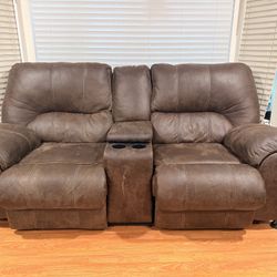 🛋️ Super Comfy Brown Reclining Loveseat w/ Console & Cup Holders – Great Condition!$350Newark, CA