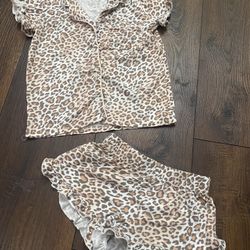 Girls Cheetah Pajamas Shirt And Shorts Size 5/6 By Tahari #11$3Atwater, CA