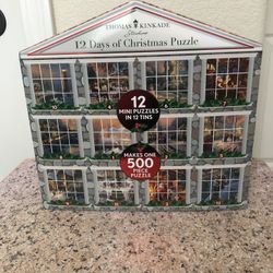 Thomas Kinkade 12 Days Of Christmas Mini Puzzles & Tins Makes 1 500 Piece Puzzle$20Manteca, CA
