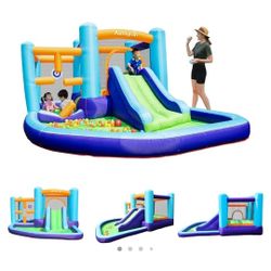 Inflatable Bounce House, Bouncer & Slide with Air Blower,Play House with Ball Pool,Inflatable Kids Slide,Jumping Castle with Carry Bag,Blue