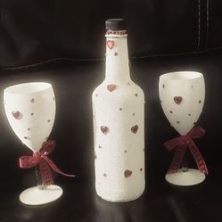 Valentines Day Hand Decorated Bottle And Glasses$50Copperopolis, CA