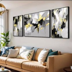 Black White and Yellow Abstract Artwork for Living Room Bedroom Diningroom Home Office, 3 Piece$50Riverbank, CA