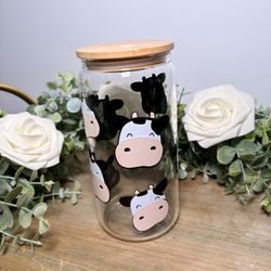 Cute Cow Print Glass Cup | Farmhouse Aesthetic Cup | 16 oz Bamboo Lid Tumbler$18Stockton, CA