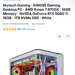 King 95 sky tech gaming pc and ryzen 7 9700x 16gb nvidia GeForce rtx 5060 ti 16gb 1tb$1,200Tracy, CA