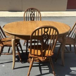Oak dining table, 4 chairs, 2 leaves$80Modesto, CA