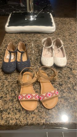 3 Girl size13 tan Sandals/ fblue and white flats$15Stockton, CA