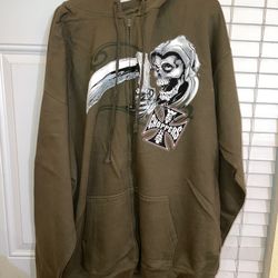 Vintage West Coast Choppers Jesse James Grim Reaper hoodie in green. $60Livingston, CA