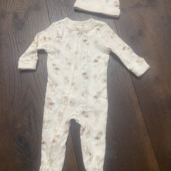Boys Rabbit Bear Sleeper Pajamas With Beanie Hat Size 3/6 Months #7$3Atwater, CA