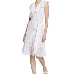 Michael Kors Beautiful White Eyelet Ruffled Self Tie Dress. Women’s Size 6$25Modesto, CA