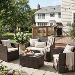 4pcs Outdoor Furniture Set, Patio Wicker Sectional Sofa with Tempered Glass Coffee Table and Cushions, Rattan Conversation Set for Garden Backyard Br$350Lathrop, CA