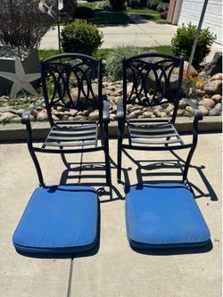 Pair of metal patio chairs with cushions both for $80$80Hughson, CA