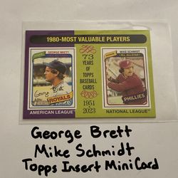 George Brett Kansas City Royals Mike Schmidt Philadelphia Phillies Hall of Fame 3rd Basemen Topps Short Print Mini Insert Card. $15San Jose, CA