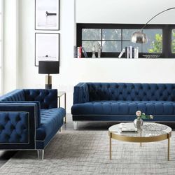 Brand New Navy Blue Velvet Sofa and Love Seat Set with Crystal Tufting$2,199Tracy, CA
