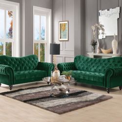 Brand New Green Velvet Sofa and Love Seat Set with Crystal Tufting$1,749Tracy, CA