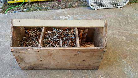 Wood tool box full of screw s and nail 10 or best offer$10Patterson, CA