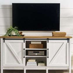 White And Wood TV Entertainment Stand Doors Slide Open And Two Cabinets $70Manteca, CA