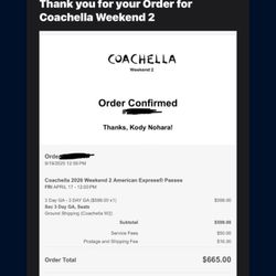 Coachella 2026 Weekend 2 American Express® Pass And Shuttle Pass $900Diamond Bar, CA